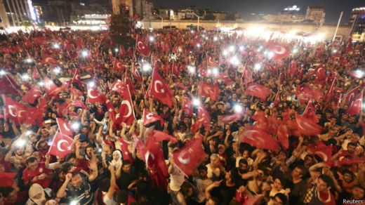 Bustani nyingi mjini Istanbul zilijaa watu waliokuwa wakiimba wakisema kuwa ardhi yao na demokrasia haviwezi kuchukuliwa na jeshi.